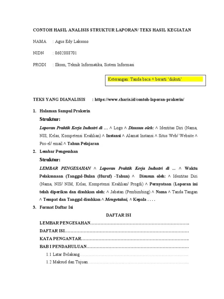 Contoh hasil analisis struktur laporan/ teks hasil kegiatan.